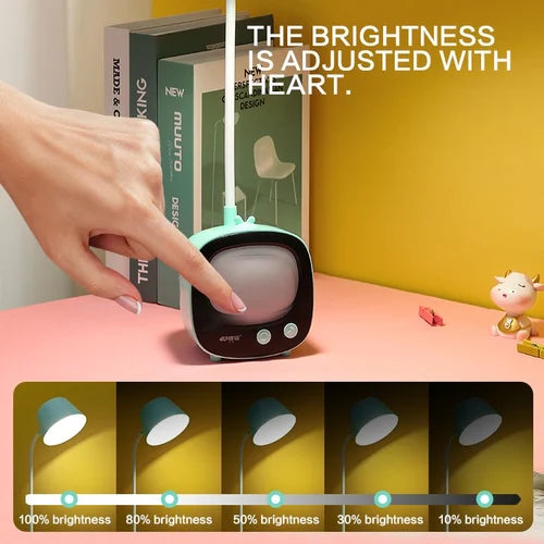 Desk lamp with USB charging port and equipped with universal USB charging cable, can provides 4-8 hours of lighting when fully charged. It will be the first choice for your family as emergency backup power when there is a sudden power outage. Multi-function Base, LED table lamp is not only a desk light, but also a pen holder, a small storage compartment, a mobile phone holder, which is convenient for placing the phone to watch a video. Make your desk clean and tidy, save you more space, bringing more convenience to your life. The study lamp beads glow in a ring shape to reduce ghosting, no flicker, no shadow. Our desk lamps home office adopt double-layer soft light source board, and meets photobiological health standards, can effectively avoid eye fatigue caused by flickering and glare, has good eye protection effect. The strong iron pipe is covered with soft silicone, which can be bent 360 degrees, allows you to easily adjust the desk lamp for college dorm room direct the light to any place you want. Suitable for home office, bedroom, living room, kids room, camping, traveling, etc. An ideal gift for your kids that helps them fall asleep sweetly. Easy touch control, just a bit touch with your finger, it brings you the suave light. Suitable for dorm, office, bedroom, living room, kids room, etc